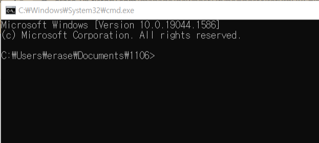 세 번째로 저장 후 파일 경로(내pc > 문서 > 1106)에 cmd를 입역해 cmd창을 연다.