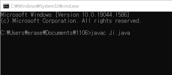네 번째로 실행된 cmd창에 컴파일 명령어 javac 파일명. java를 입력한다.